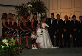 And the wedding party with the perfect little ring bearer. This was before the wedding, during pictures. I carried him down the aisle, kicking and screaming, stuck him in his spot, and ran. He was perfectly still. Even gave a few smiles. And maybe got everyone to clap for him when the pictures were over….
